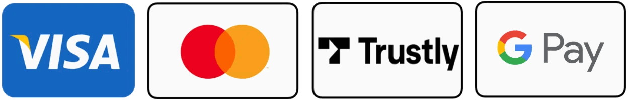 Klarna, Credit card, Trustly, Apple and Google pay!