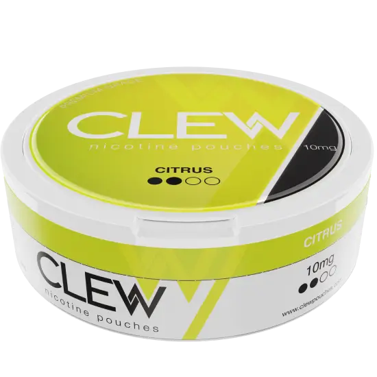 CLEW Citrus 10mg Nicotine Pouches, Tangy, tobacco-free citrus flavour in slim format. Medium strength for clean, balanced nicotine satisfaction.