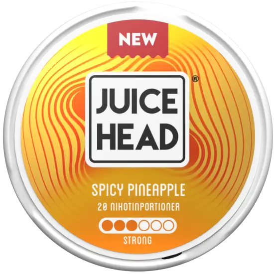 Juice Head Spicy Pineapple 9 mg Strong delivers juicy pineapple with a bold spicy twist in slim, tobacco-free pouches. Strong nicotine impact and tropical freshness combined.