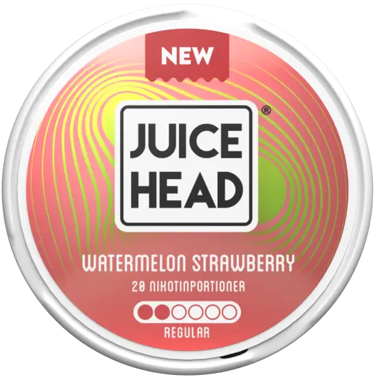 Juice Head Watermelon Strawberry 6 mg Regular blends juicy watermelon and ripe strawberry in slim, tobacco-free pouches. Smooth, refreshing flavour with a regular nicotine kick.