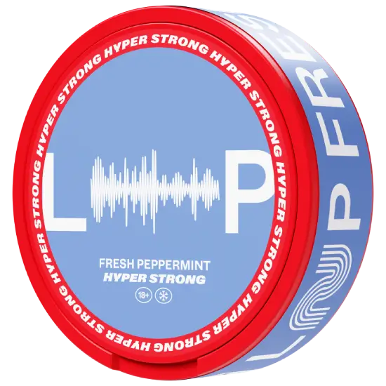 Each can includes twenty slim-format, tobacco-free pouches with a total net weight of 12.5 grams. The pouches provide an even, consistent nicotine release with minimal drip. Loop Crispy Peppermint Hyper Strong delivers exceptional freshness and clean flavour performance in a discreet, modern format that defines Scandinavian precision.