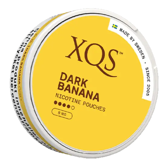XQS Dark Banana 8mg Nicotine Pouches – Strong, slim, tobacco-free pouches with rich banana flavour. Smooth, fruity, and bold with 8 mg nicotine per pouch.